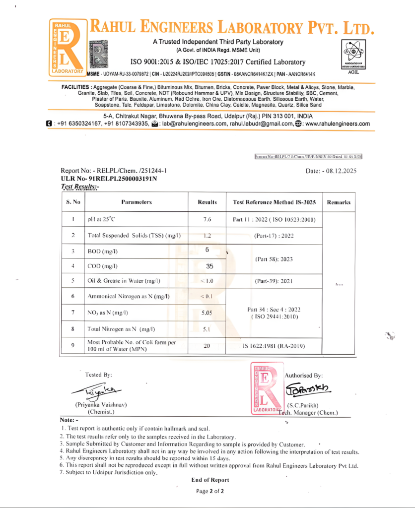 Hindustan Zinc Ltd. expressed satisfaction with the timely execution, technical expertise, and achieved results. The successful upgradation ensured regulatory compliance, operational stability, and long-term reliability of the sewage treatment facilities at Dariba Mines.