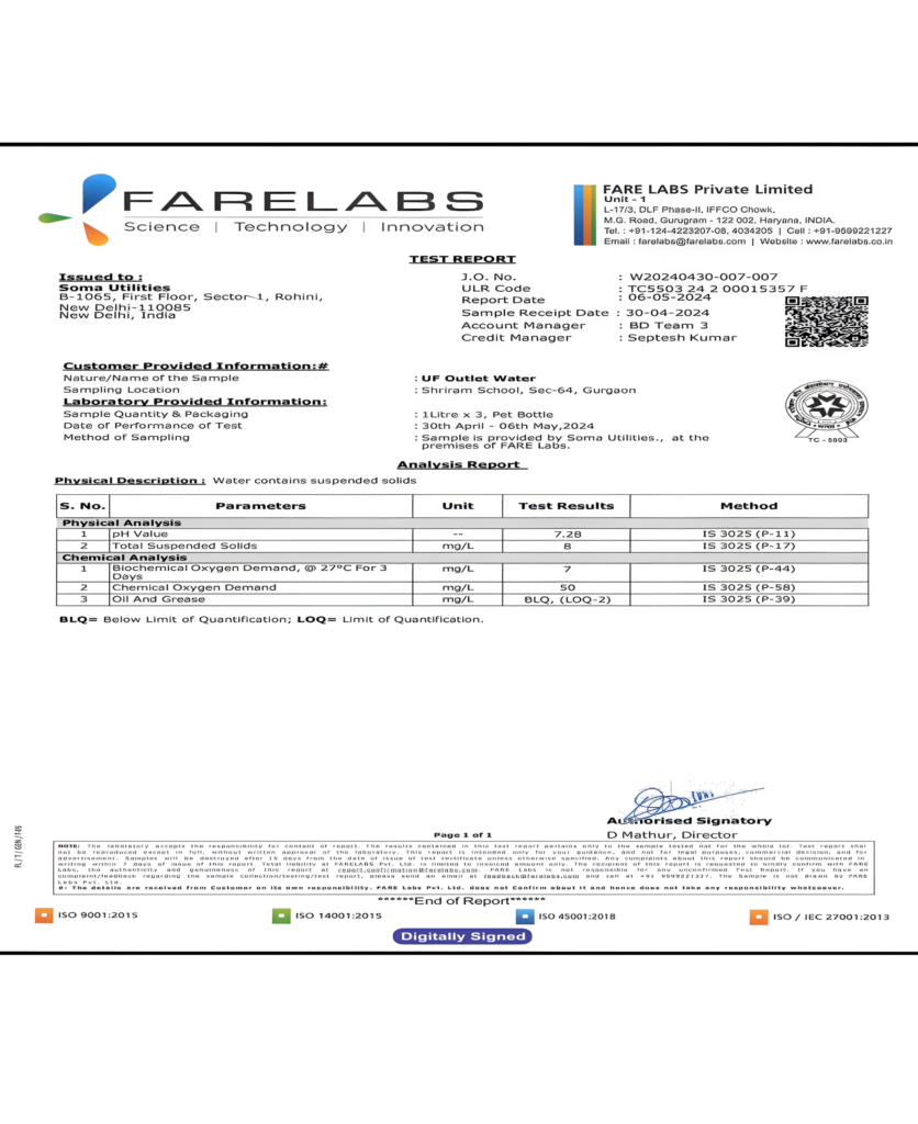 Soma Utilities carried out complete STP repair and modification works to address the identified issues. Tank liquid levels were corrected to eliminate overflow problems, and a proper bar screen system was installed. Tertiary filtration units were upgraded, sludge recirculation and dewatering systems were provided, and an Ultrafiltration system was installed as per PCB requirements. The STP was converted into fully automatic mode, resulting in stable operation and treated water quality consistently meeting PCB norms.client has awarded us O&M instead of AMC after satisfactory work. The plant has been successfully operated and maintained by Soma Utilities for over two years.